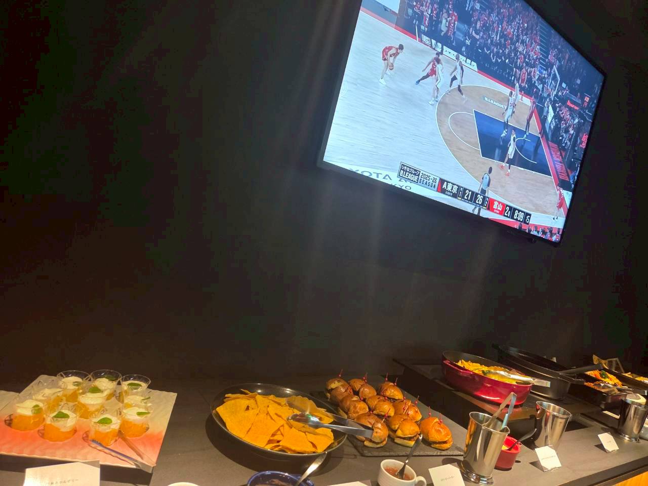 TOYOTA ARENA TOKYOのCHAMPAGNE COLLET パーティーラウンジは、職場やご家族、友人など大人数のグループで食事とお酒を楽しみながら試合観戦できます!