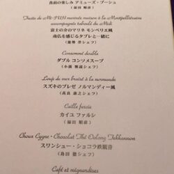 東京・渋谷では日本エスコフィエ協会の福田順彦名誉会長自らがエピキュロスの晩餐会メニューを監修。本年は、協会より能勢洋理事、髙良康之理事、小濱雅説会員が協力シェフとして腕を振るいます。また、パティシエ・シマ 島田徹シェフを招き、感性豊かなデザートが晩餐会を華やかに彩ります。5人のシェフによる一夜限りの饗宴をお楽しみいただきました。