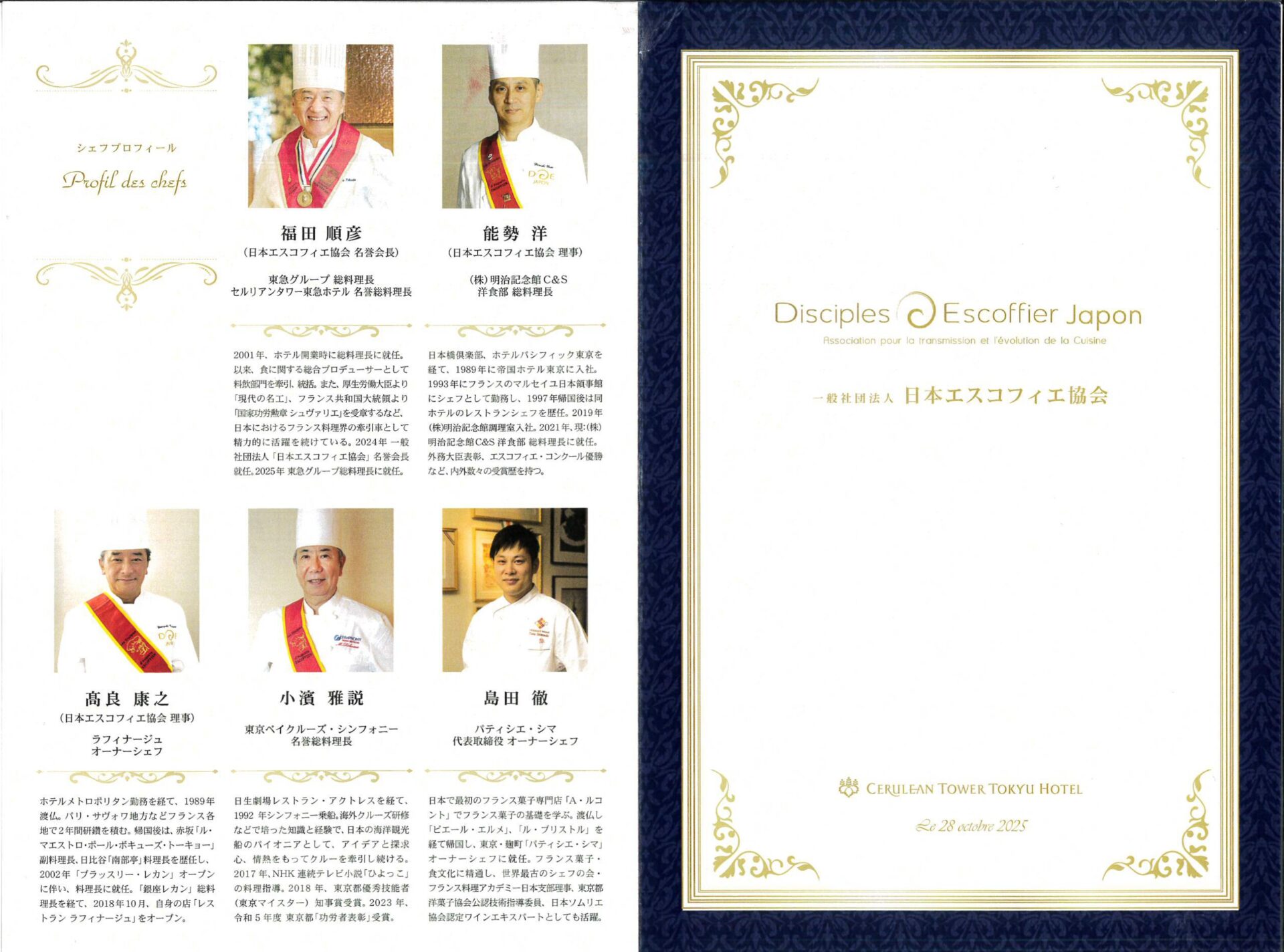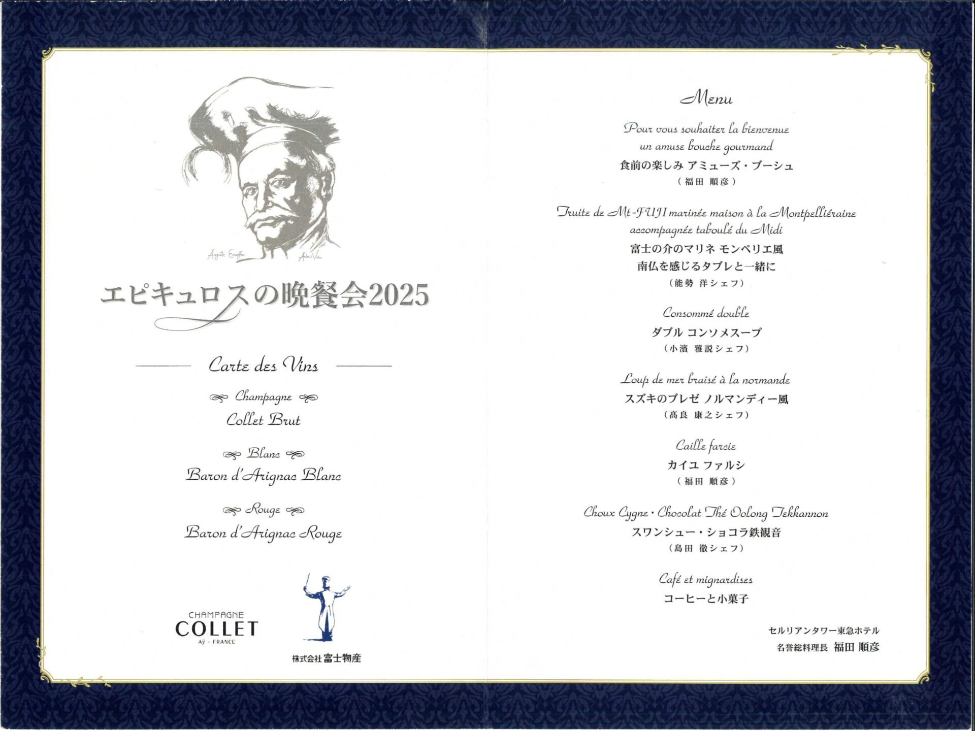 2025年10月28日(火)にオーギュスト・エスコフィエの生誕を祝う「エピキュロスの晩餐会」ががセルリアンタワー東急ホテルにて行われました。