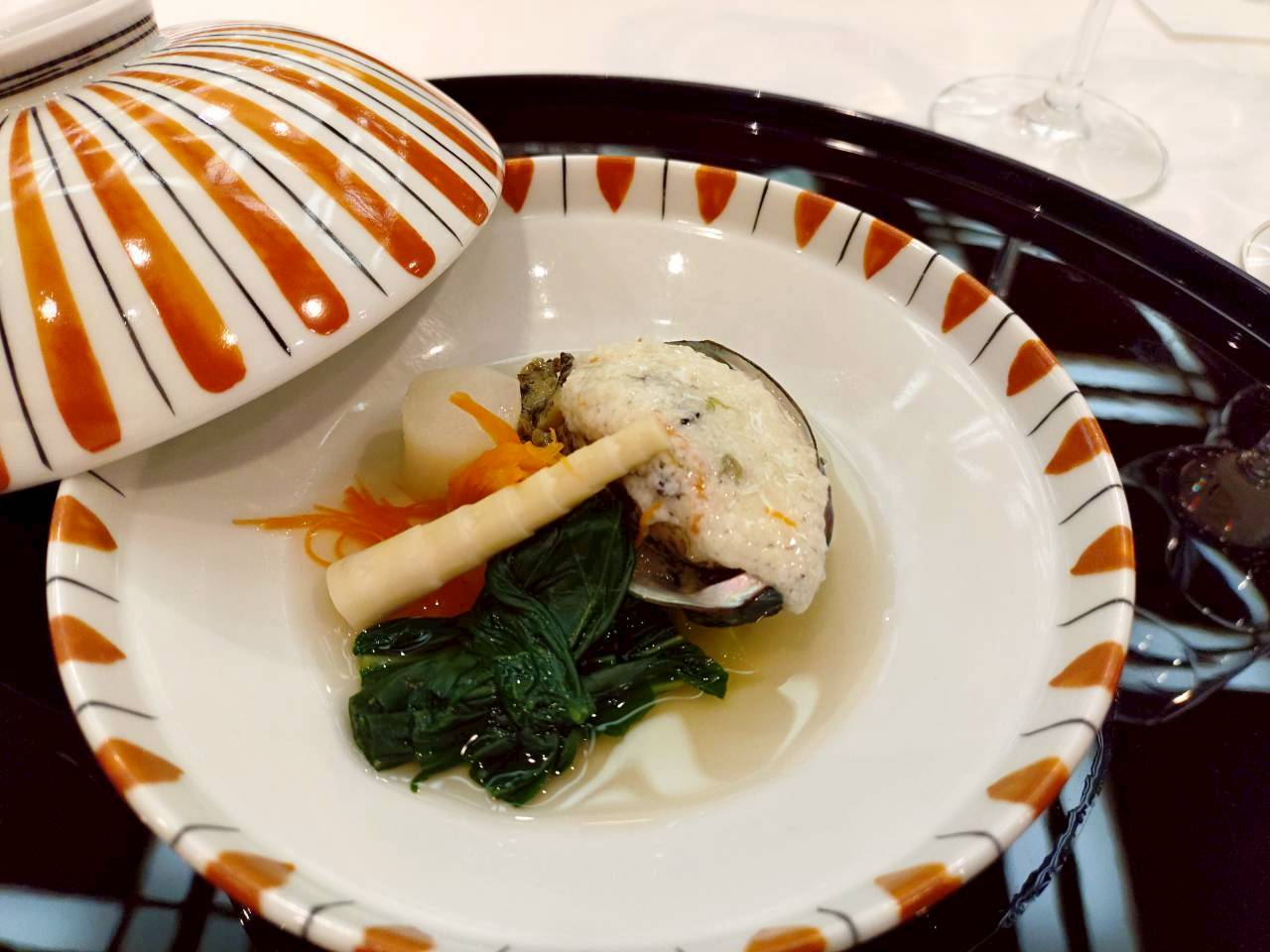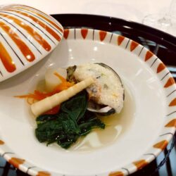 Steamed abalone with turnip, Seasonal vegetables, gently simmered,Silver sauce